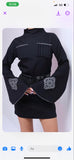 ჩოხა კაბა გაწყობილი - ტყავის ქამრით, მოქარგული საქილეებითა და მკლავებით