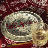 ლურჯი სუფრის ორნამენტები XIX საუკუნიდან აქტუალურია. ტრადიციულ ნიმუშებზე ხშირად გვხვდება ცხოველების, ფრინველების, მცენარეებისა და ტრადიციულ ტანისამოსში გამოწყობილი ქალ-ვაჟების გამოსახულებები, აღმოსავლური მანა, არშია და და სხვა ორნამენტები. თითოეულ მათგანს სიმბოლური მნიშვნელობა აქვს და ასახავს უძველეს ქართულ რწმენა-წარმოდგენებს. ჩვენს ფაიფურის ჭურჭელზე სწორედ ეს დიზაინია აღდგენილი.