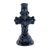 სასანთლე ლურჯი. ზომა: სიმაღლე - 9სმ, სიგანე - 5სმ. სანთლის ჩასადების დიამეტრი - 1სმ. მასალა: მოჭიქული კერამიკა.