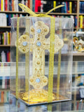 მანქანის ჯვარი ჯვარს ძირზე აქვს წებოვანი ლენტი, რისი საშუალებითაც შეძლებთ მანქანაში დამაგრებას.